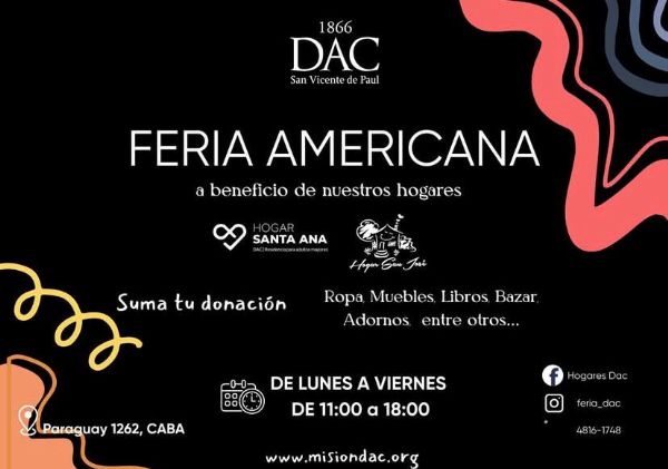Feria solidaria a beneficio de los Hogares DAC. Lo recaudado es para el mantenimiento de edificios y personal de los hogares.