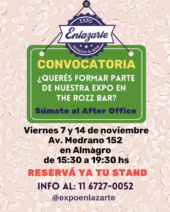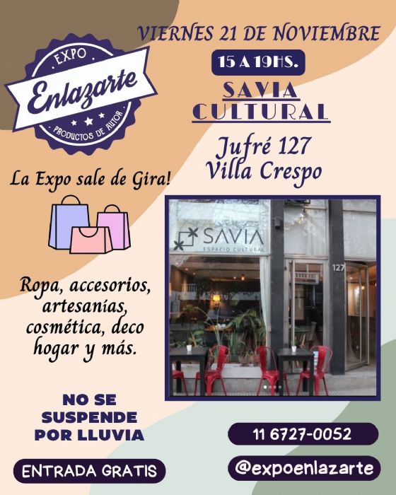 Expo EnlazArte vuelve con todo, en el barrio de Villa Crespo, con artesanos de diferentes rubros. Vení a conocernos con la familia, es el mejor paseo de compras alternativo!!! Se realizará en "SAVIA ESPACIO CULTURAL", calle Jufré 127.