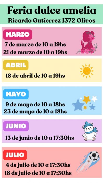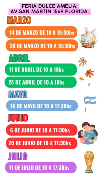 Ferias Dulce Amelia Te espera en todas estas Fechas